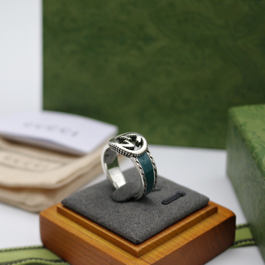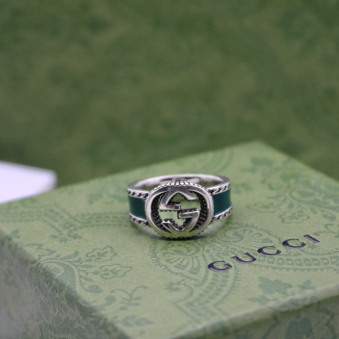 ブランドの創設者グッチオ・グッチのイニシャルを表すインターロッキングGを中心に据えたシルバー リング。印象的なターコイズのエナメルを施し、テクスチャードトリムで仕上げました。タイムレスなものづくりへの姿勢を打ち出しているEpilogueコレクションでは、グッチを象徴するシンボルに光を当てています。